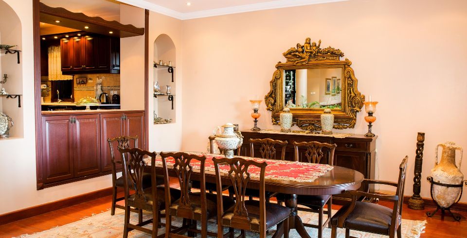 Mutfak : Amerikan mutfakta buz dolabı, bulaşık makinesi, fırın, mikrodalga fırın, 4’lü ocak (ankastre), elektrikli su ısıtıcı, 6 kişilik yemek takımları, çatal ve bıçak takımları, tencere ve tava takımları, bardaklar bulunmaktadır.