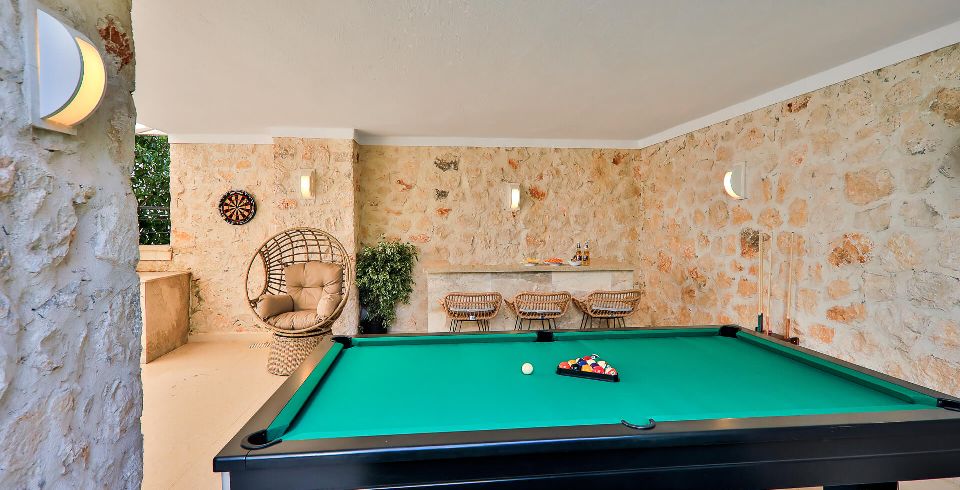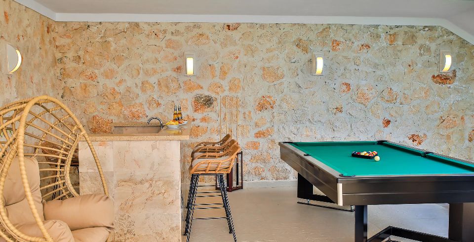 Salon : Salonda klima uydu alıcı, TV, bilardo masası tenis masası oturma grubu, lavabo yer almaktadır. Salon havuz katındadır.