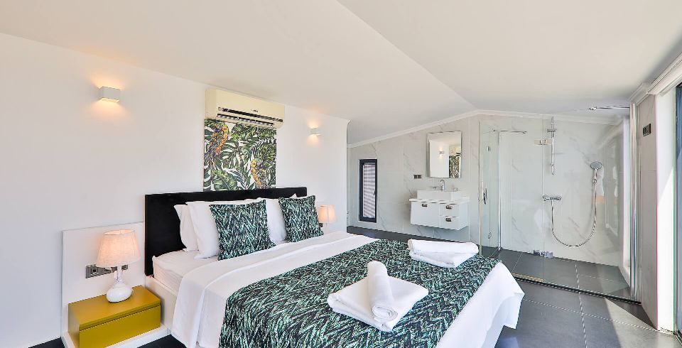 3. Yatak Odası : Süit yatak odası çift kişilik konfor yatak, gardırop, komodin, klima, banyo-WC yer almaktadır.