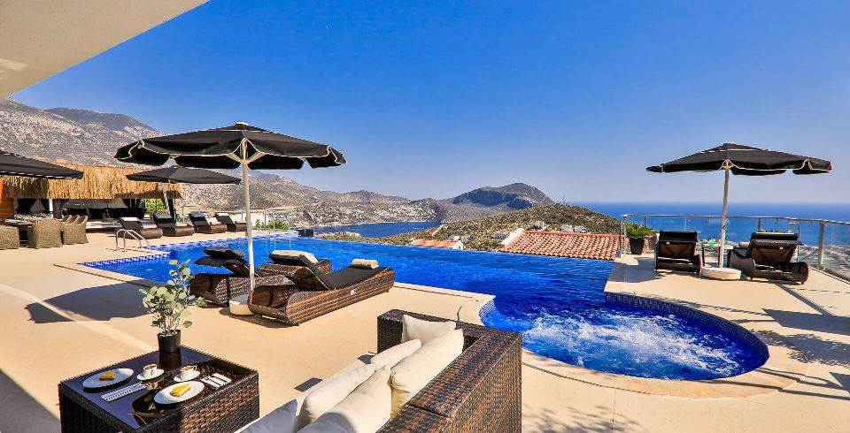 Kalkan Bölgesinde bulunan 4 yatak odalı 8 kişilik Full Deniz Manzaralı Lüks Kiralık yazlık villamızdır. Villamız Kalkanın en güzel konuma sahip bölgesinde bulunmaktadır. Villamız geniş bahçe ve havuz terasına sahip olup oldukça eğlenceli ve keyifli bir tatil sizi ve sevdiklerinizi beklemektedir. Villamız 2020 yılı içersin de hizmete girmiş yeni bir villamızdır. Konfor ve kaliteyi bu villamızda yaşayacaksınız .Muhteşem deniz ve adalar manzarasına sahip olan villamızda gün batımı keyfini sürebilirsiniz.