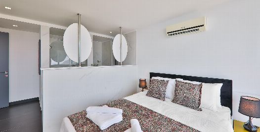 1. Yatak Odası : Süit yatak odası çift kişilik konfor yatak, klima, gardırop, komodin, LCD TV ve banyo-WC almaktadır.