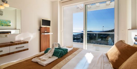2. Yatak Odası : Süit yatak odası çift kişilik yatak, klima, elbise dolabı, makyaj masası, komodin, TV uydu, banyo ve lavabo, terasa çıkış bulunmaktadır.