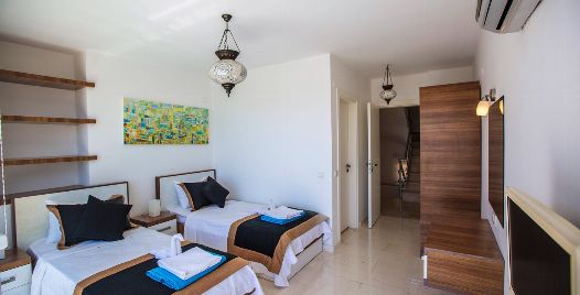 4 Yatak Odası : Süit yatak odası 2 adet tek kişilik yatak, klima, elbise dolabı, makyaj masası, komodin TV uydu, banyo ve lavabo bulunmaktadır.
