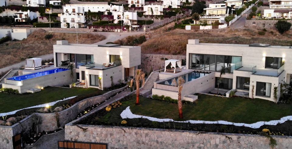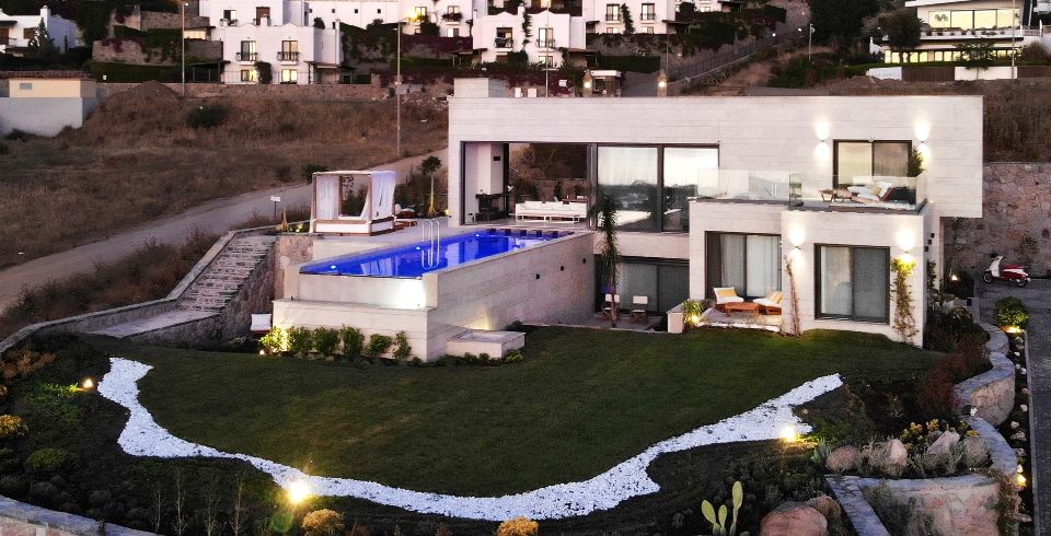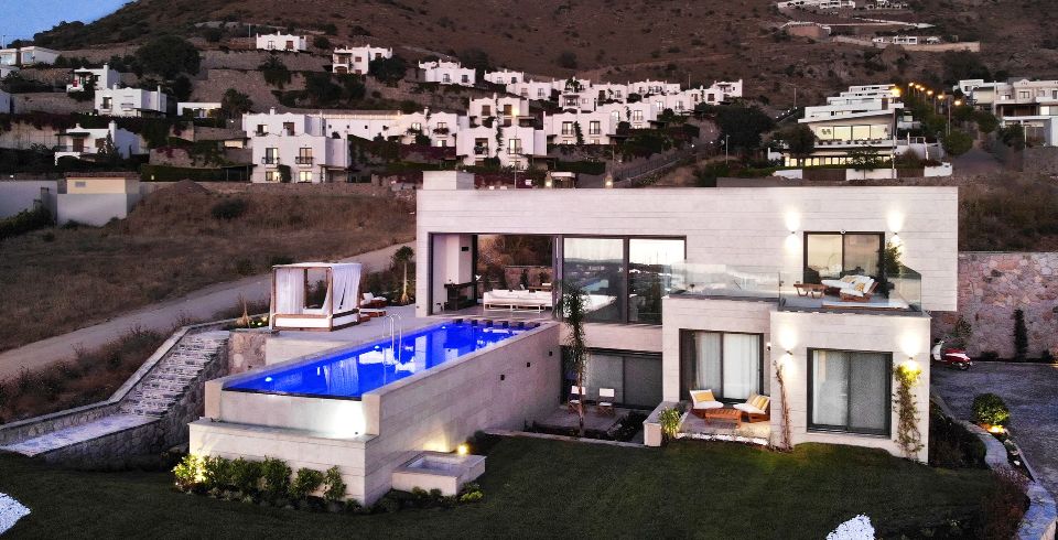 Bu muhteşem kiralık tatil villası Ortakent Yahşi ile Bağla bölgelerinin kesişim noktasında 360 derece panoramik şehir , doğa , çift taraflı Turgut reis ve Yahşi koyu muhteşem deniz manzarasına sahip adeta Şahin tepesini andıran bir tepelik üstünde yer almaktadır. Tatil Villamız 6 yatak odası , salon, mutfak , 6 banyo + 2 WC lavabo ve 1 çamaşır odasından oluşmakla beraber 2.500 m2 arazi üzerinde 600 m2 net iç kullanım alanına sahiptir.