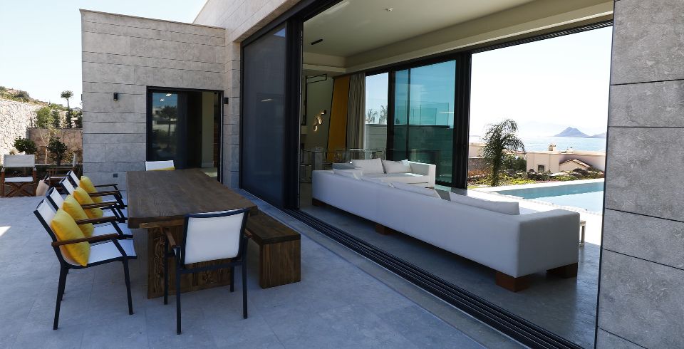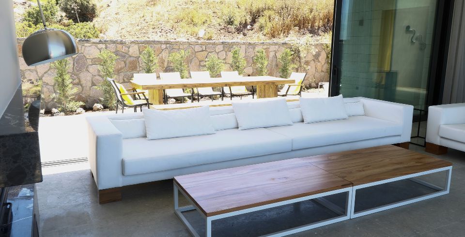 Salon : Salon içerisinde oturma grubu, TV, klima, sehpa bulunmaktadır. Havuz terasına çıkış yapılabilmektedir.