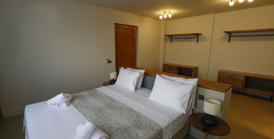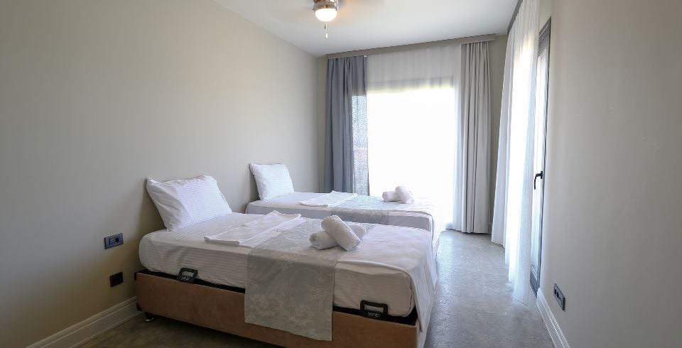 4. Yatak Odası : 1 adet çift kişilik yatak, klima, komodin, elbise dolabı, makyaj masası, banyo ve tuvalet bulunmaktadır.