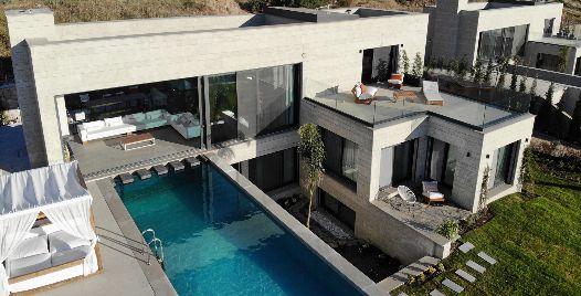 Merkezi klima sistemi bulunan tatil villamız, TV, uydu, dijitürk, internet, tüm ekipmanlara sahip Franke marka mutfak, tüm beyaz eşyalar ve mobilyası ile günlük hayatta ihtiyacınız olabilecek her türlü eşya ile donatılmış muhteşem bir tatil villasıdır. 450 tonluk olimpik düzeyde havuz ve çocuk havuzu bulunan villamızın çok geniş teras ve peyzajlı bahçe alanları bulunmaktadır. Bahçede ayrıca kamelyası da bulunan villamızda bahçe mobilyaları ve barbekü keyfini yapacağınız olanaklarda mevcuttur.