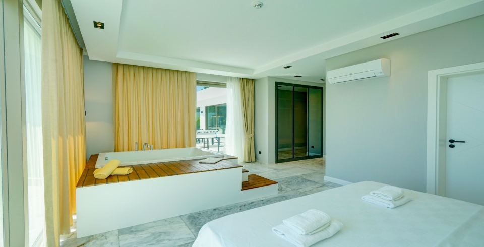 Villanın geniş ve korunaklı havuzunda güneşin tadını çıkarabilir, bahçesinde yer alan masa tenisi ve langırt ile keyifli zaman geçirebilirsiniz. Çift jakuzili tasarımı, hem iç hem de dış mekanlarda rahatlama imkanı sunarak tatilinize ekstra bir lüks katıyor. Sabahları doğanın huzur veren sesleriyle uyanıp, terasınızdan nefes kesen manzarayı izleyerek güne başlayabilirsiniz.