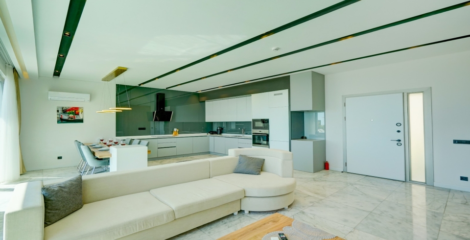 Mutfak : Amerikan mutfak, bulaşık makinası, buzdolabı, ankastre fırın, mikrodalga fırın, ankastre 4'lü ocak, su ısıtıcısı, tencere ve tava takımı, yemek takımı, kaşık çatal bıçak takımı, bardak takımı, yemek masası, sandalyeler ve tost makinesi bulunmaktadır.