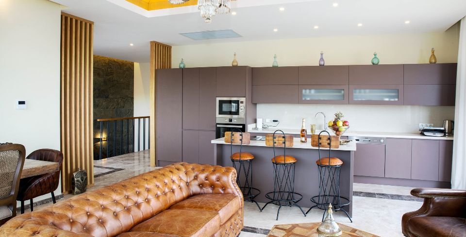 Mutfak : Modern Amerikan mutfak içerisinde 6 kişilik yemek masası, buzdolabı, bulaşık makinası, fırın, ocak, mikrodalga fırın, tost makinası, yemek masası, yemek takımları, çatal ve bıçak takımları, tencere ve tava takımları, bardaklar bulunmaktadır.