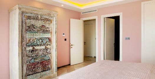4. Yatak Odası : 1 adet çift kişilik yatak, klima, komodin, elbise dolabı, makyaj masası, banyo ve tuvalet bulunmaktadır.