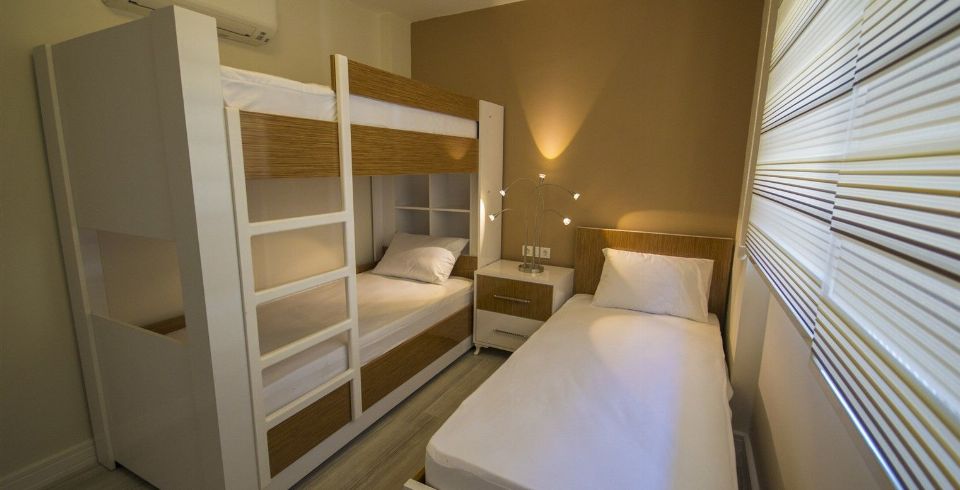 4. Yatak Odası : 3 adet tek kişilik yatak, klima, komodin, elbise dolabı, makyaj masası, banyo ve tuvalet bulunmaktadır.