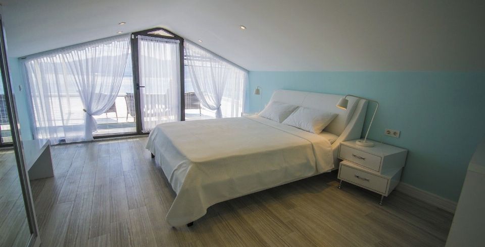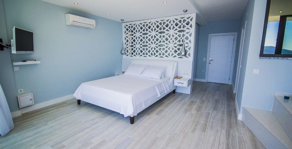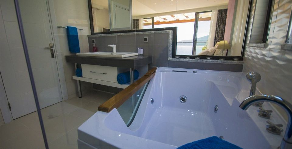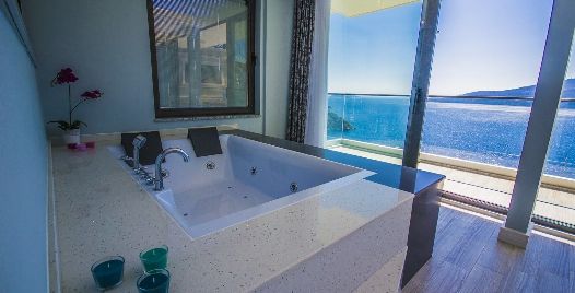 Villanın 6 odasının tamamı ebeveyn banyoludur. İki ana yatak odasında jakuzili küvet, geniş dolaplar ve makyaj masaları yer alır. Çatı katındaki süit oda, rattan oturma grubuna sahip terasıyla Kalkan’ın en etkileyici gün batımlarını izlemek için mükemmel bir konumdadır.