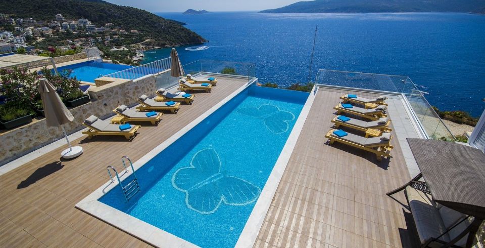 Kalkan’ın gözde Kışla bölgesinde yer alan Villa Mavi Kelebek, muhteşem Kalkan Körfezi, adalar ve gün batımı manzarasıyla ultra lüks tatil deneyimi sunan özel bir konaklama seçeneğidir. 6 süit yatak odalı bu geniş villada, 12 kişiye kadar kalabalık aileler ve arkadaş grupları konforla konaklayabilir.
