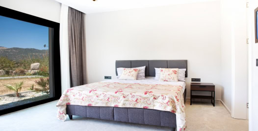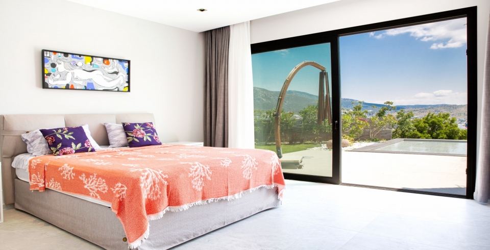 Bodrum, Ortakent / Yakaköy'de oldukça geniş bir arazi içinde bulunan 3 Odalı Özel Havuzlu Lüks Yazlık Kiralık Korunaklı Villa’mız kalabalıktan uzak, sakin bir konumda olmasına rağmen, Ortakent/Yahşi’nin mavi bayraklı plajlarına ve restoranlara araç ile sadece 7-8 dakikalık mesafededir. Muazzam konumu sayesinde, enfes doğa ve Bodrum manzarasının tadını çıkarabileceğiniz bu tatil evimiz, konforlu bir tatil deneyimleyebilmeniz için tüm ihtiyaçlarınız düşünülerek, özenle ve zevkli bir şekilde eşyalandırılmıştır. Villamızın girişinde 2-3 araçlık park alanı bulunmaktadır. Bu bölümden bahçe/yüzme havuzu bölümüne ve evin ana giriş kapısına geçiş sağlanmaktadır. Tek katlı villamızda ikisi giyinme odalı, 3 yatak odasının tamamı çift kişilik yataklı olup, çocuklar ile birlikte 6 kişilik konaklama kapasitesine sahiptir. Açık plan salon, tam donanımlı mutfak ve yemek alanı, tatilinizin büyük bölümünü geçireceğinizi düşündüğümüz, harika manzaralı, korunaklı bahçe / yüzme havuzu geçiş bulunmaktadır. Villamız, aracınızla Milas Bodrum Havalimanı’na 40 dakika, Bodrum merkeze 10 dakika, dünyaca ünlü markalara ev sahipliği yapan Yalıkavak Marina’ya ve beachlere 15-20 dakika mesafededir. Konum olarak gözlerden uzak ve aynı zamanda eğlencenin tadını çıkarmak isteyenler için harika bir lokasyondadır.