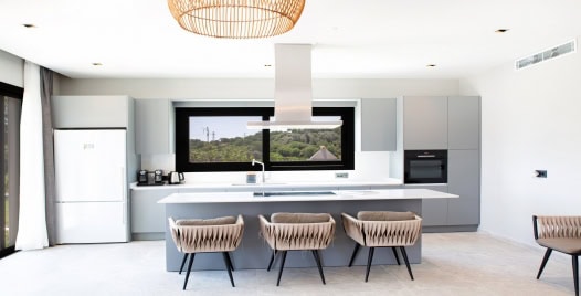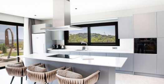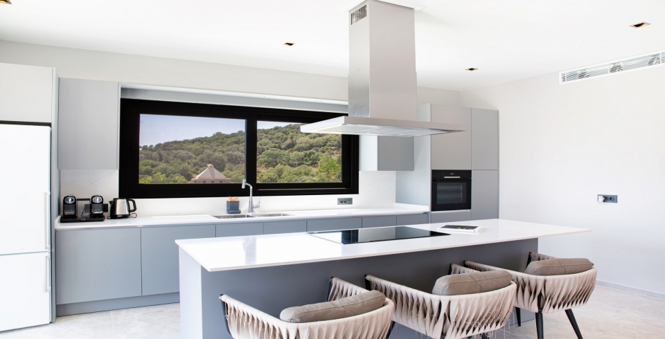 Mutfak : Amerikan mutfakta buz dolabı, bulaşık makinesi, fırın, mikrodalga fırın, 4’lü ocak (ankastre), elektrikli su ısıtıcı, 8 kişilik yemek takımları, çatal ve bıçak takımları, tencere ve tava takımları, bardaklar bulunmaktadır.