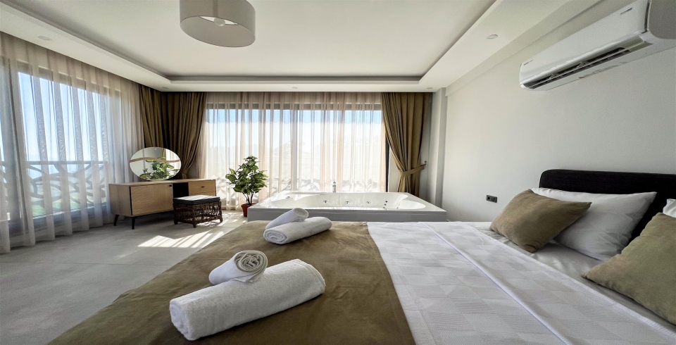 2.Yatak Odası: Çift kişilik yatak,jakuzi ,klima, elbise dolabı, makyaj masası,tuvalet ve banyo bulunmaktadır.