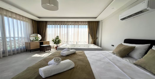 1.Yatak Odası: Çift kişilik yatak, jakuzi, klima,elbise dolabı, makyaj masası,tuvalet ve banyo bulunmaktadır.