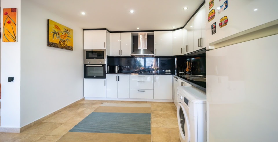 Mutfak : Geniş ferah ve modern dizayn edilmiş Amerikan mutfak buzdolabı, bulaşık makinası, çamaşır makinası, fırın, 4lü ocak (ankastre), mikrodalga fırın, elektrikli su ısıtıcısı, tava ve tencere vb. mutfak ekipmanları, 6 kişilik yemek takımı