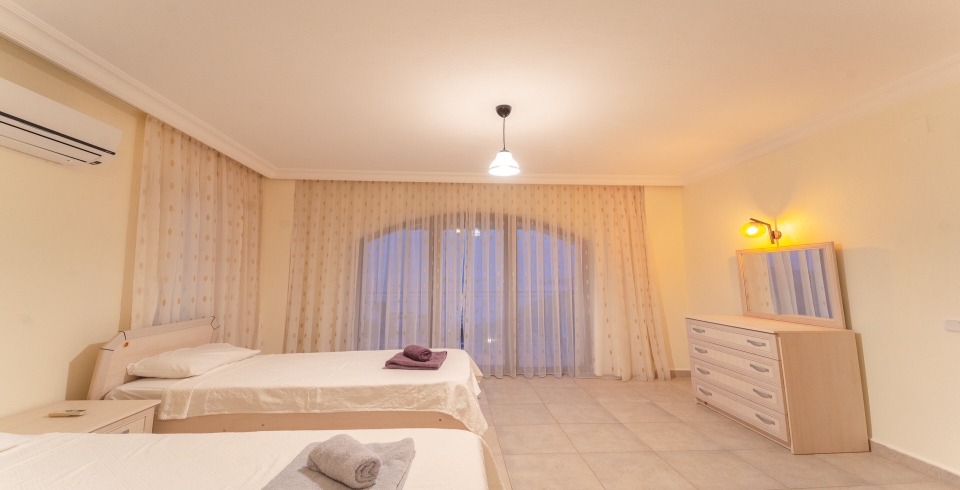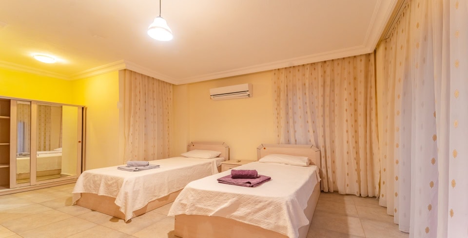 4.Yatak Odası: 2 tek kişilik yatak, elbise dolabı, komodin, klima, makyaj masası, jakuzi, banyo ve lavabo bulunmaktadır.