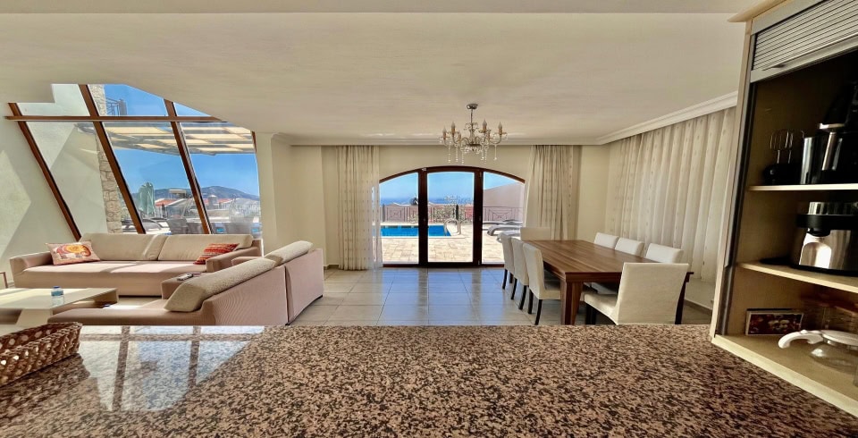 Villa Meltem, Kalkan’ın Kızıltaş bölgesinde yer alan taş mimarili ve zarif bir tatil villasıdır. Dört yatak odası ve dört banyosu ile 8 kişilik kapasiteye sahip olan villa, geniş aileler ve arkadaş grupları için uygundur. Tam donanımlı Amerikan mutfağında buzdolabı, fırın, ocak, mikrodalga ve bulaşık makinesi bulunurken, konforlu salonda oturma grubu, klima ve TV yer almaktadır. Salon, doğrudan havuz terasına açılarak gün boyu keyifli vakit geçirmenize imkân tanır.