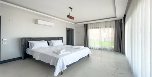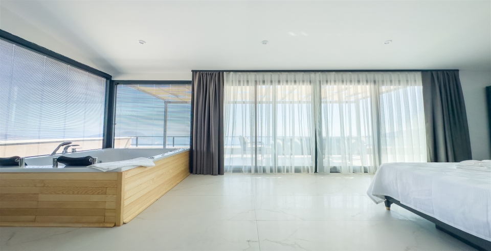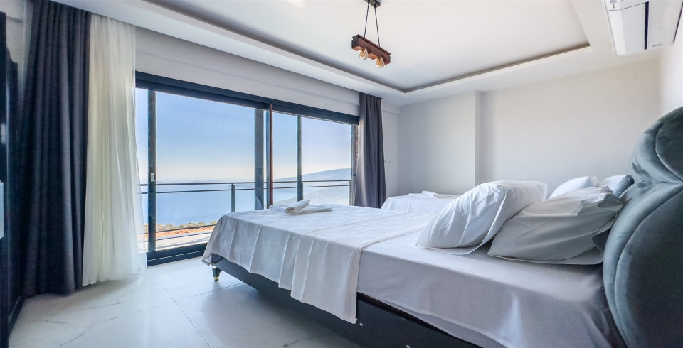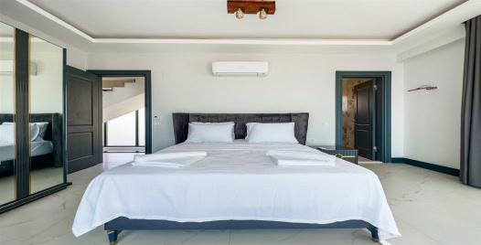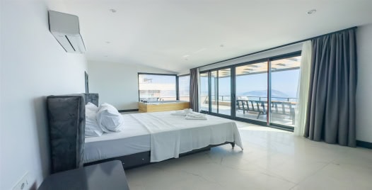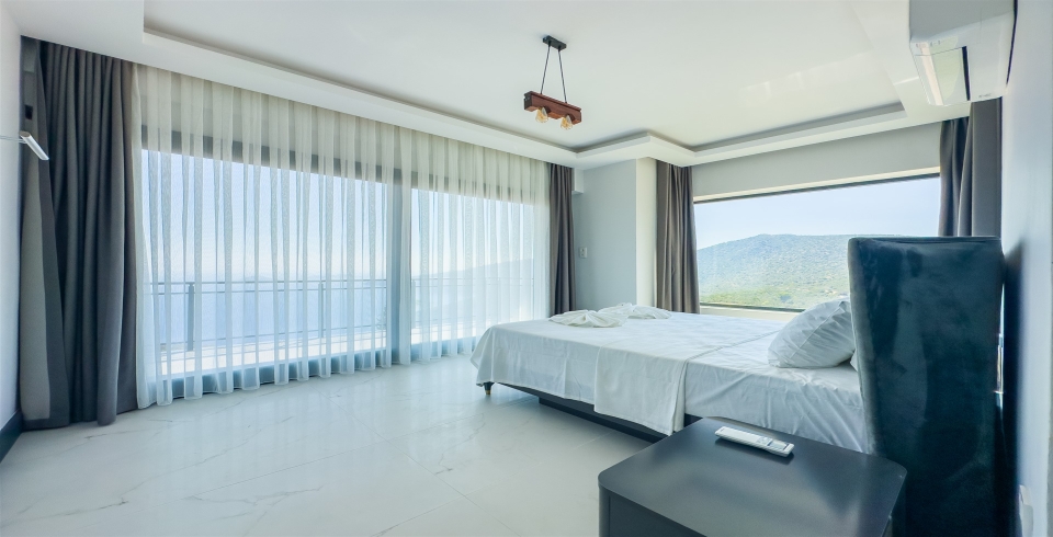 5.Yatak Odası: Lüks Süit Ebeveyn odası, Panoramik Kalkan, Deniz ve Doğa manzaralı olup, Banyo, Sauna, Jakuzi, Şezlong ve oturma grubu mevcuttur.