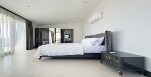 4.Yatak Odası: Çift kişilik yatak, Elbise dolabı, Komodin, Klima, Giyinme odası, Deniz manzaralı Balkon bulunmaktadır.