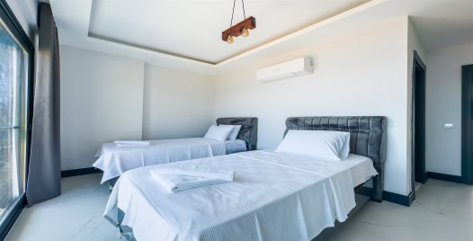 2.Yatak Odası: 2 Adet tek kişilik yatak, Elbise dolabı, Komodin, Klima, Banyo, Deniz manzaralı balkon bulunmaktadır.