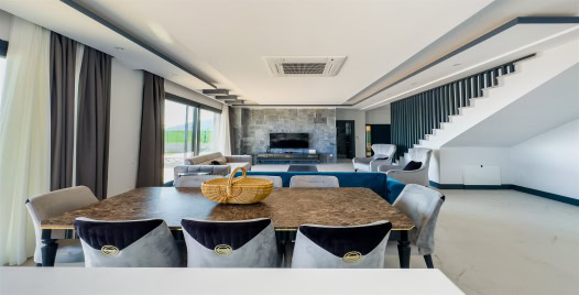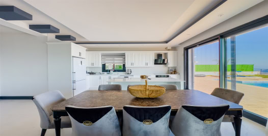 Salon: Oturma grubu, Uydu TV (LCD), Klima, 8 kişilik yemek masası, Havuz kenarına çıkış bulunmaktadır.