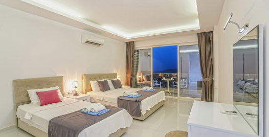 2. Yatak Odası : 1 adet çift kişilik yatak, 1 adet tek kişilik yatak, klima, elbise dolabı, komodin, banyo ve tuvalet bulunmaktadır.