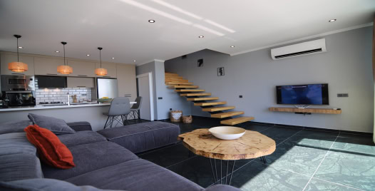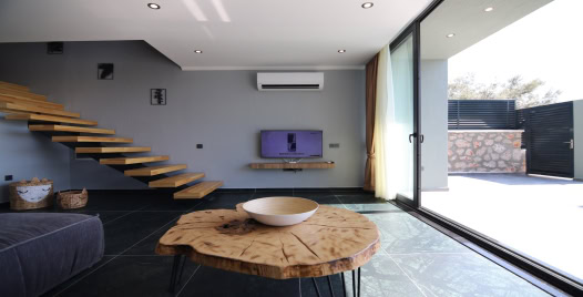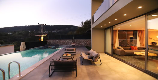 Salon : Salon içerisinde oturma grubu, TV, klima, sehpa bulunmaktadır. Havuz terasına çıkış yapılabilmektedir.