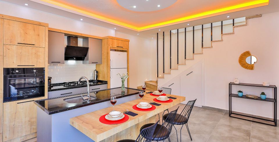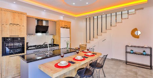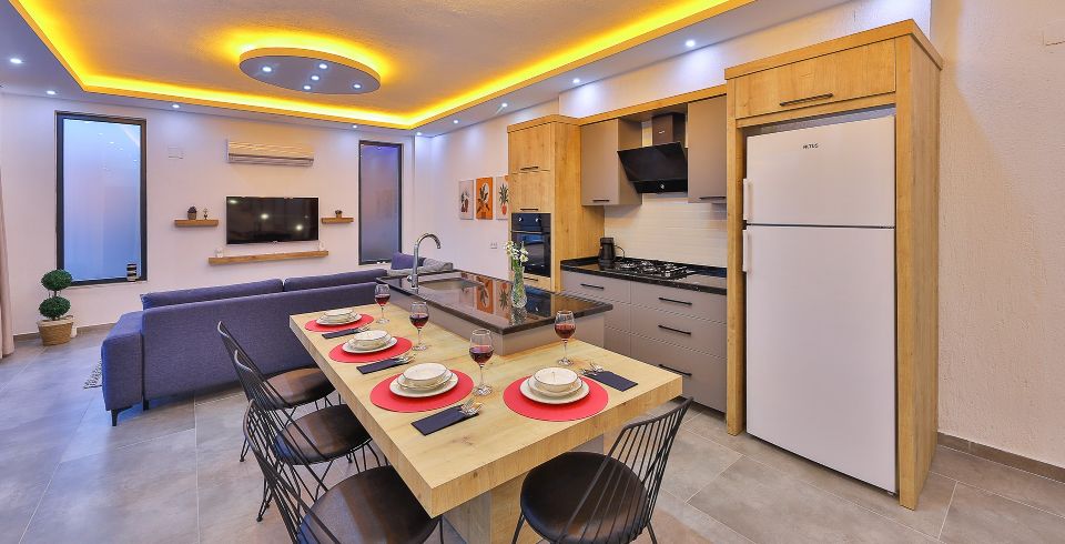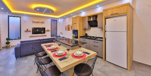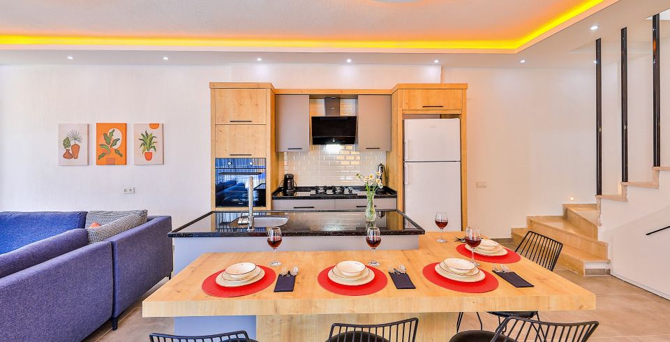 Mutfak : Modern Amerikan mutfak içerisinde 6 kişilik yemek masası , buzdolabı, bulaşık makinası, fırın, ocak, mikrodalga fırın, tost makinası, yemek masası, yemek takımları, çatal ve bıçak takımları, tencere ve tava takımları, bardaklar bulunmaktadır.