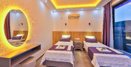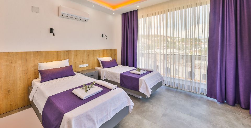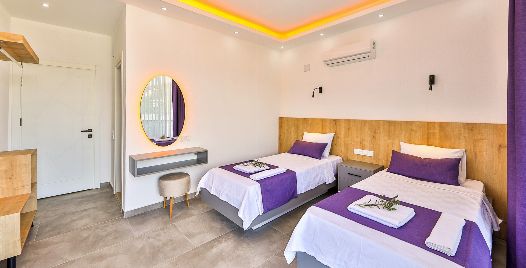 2. Yatak Odası : 2 adet tek kişilik yatak, klima, komodin, elbise dolabı, makyaj masası, banyo ve tuvalet bulunmaktadır.