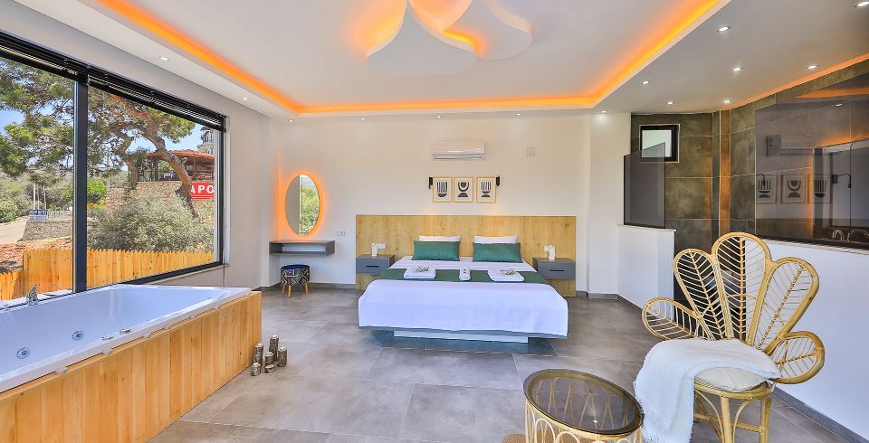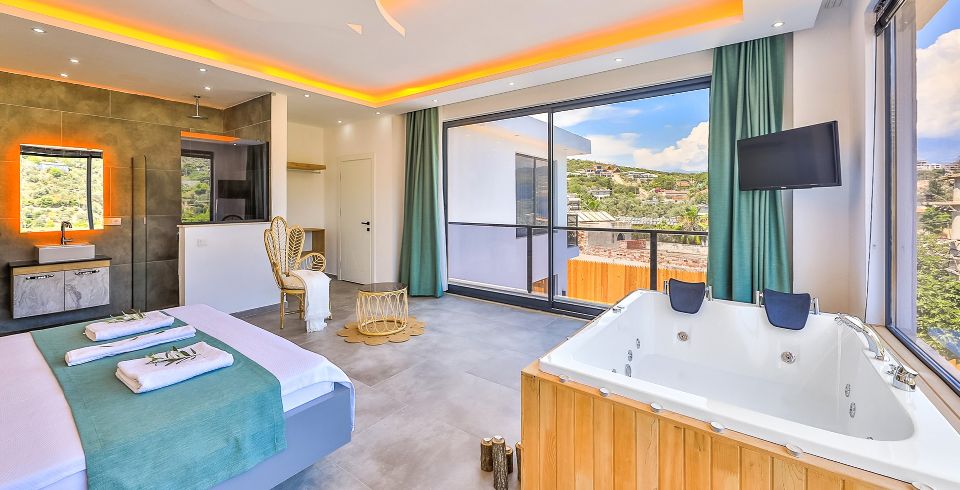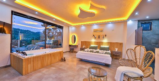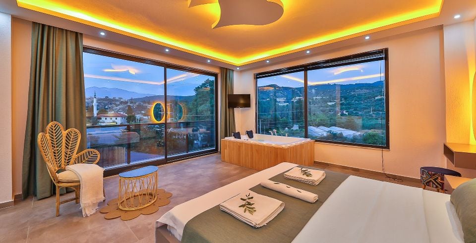 Kalkan Patara mevkisinde bulunan kiralık balayı villası, sessizliğin, huzurun hakim olduğu bir villada tatil isteyen çiftlerimiz için oldukça uygun bir seçenektir. Muhafazakar villalar ve balayı villaları kategorisinde yer alan villamız, 2 yatak odası ile 4 kişilik konaklama kapasitesine sahiptir. Havuzu korunaklı ve bahçesi dışarıdan görünmeyen Villa Metaverse, mahremiyete önem veren çiftlerimiz için huzur dolu bir tatil fırsatı sunuyor. Ayrıca yatak odasında misafirlerimizin rahatlaması için 2 kişilik jakuzi konforu da sağlamaktadır.