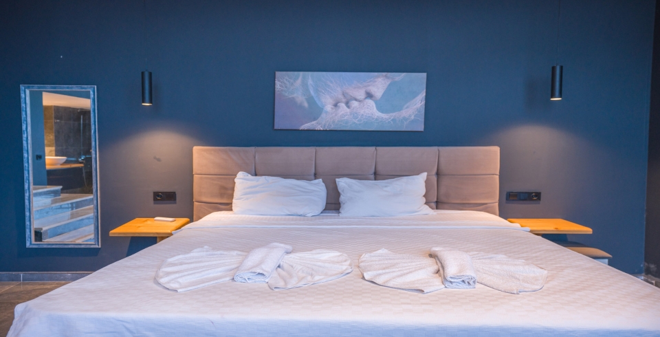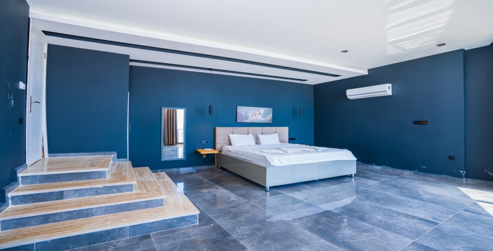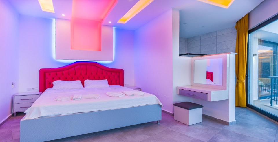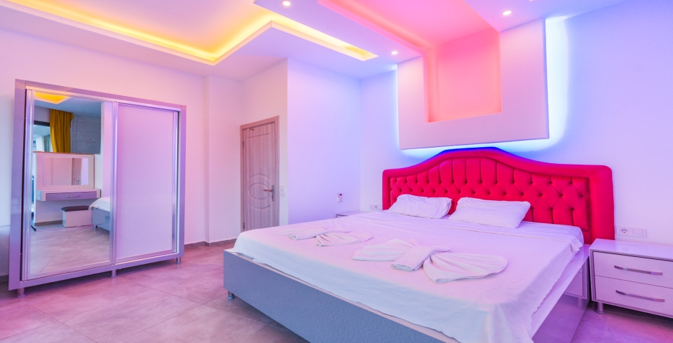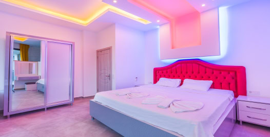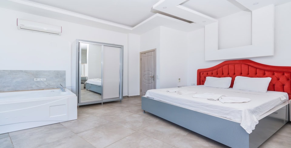 1. Yatak Odası : 1 adet çift kişilik yatak, klima, komodin, elbise dolabı, makyaj masası, jakuzi, banyo ve tuvalet bulunmaktadır.