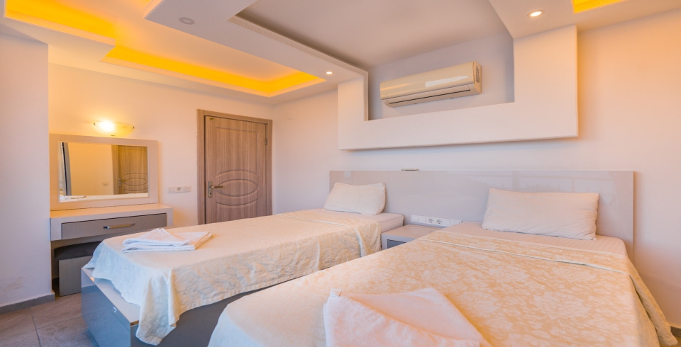 2. Yatak Odası : 2 adet tek kişilik yatak, klima, komodin, elbise dolabı, jakuzi, balkon, banyo ve tuvalet bulunmaktadır.
