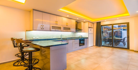 Mutfak : Modern Amerikan mutfakta buzdolabı, bulaşık makinası, fırın, ocak, kettle, yemek masası, yemek takımları, çatal ve bıçak takımları, tencere ve tava takımları, bardaklar bulunmaktadır.