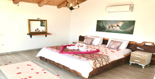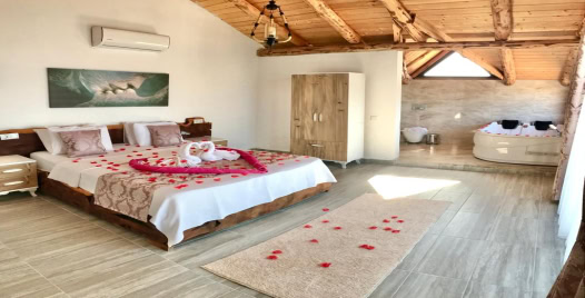 1. Yatak Odası : 1 adet çift kişilik yatak, klima, komodin, makyaj masası, elbise dolabı, jakuzi, banyo ve lavabo bulunmaktadır.