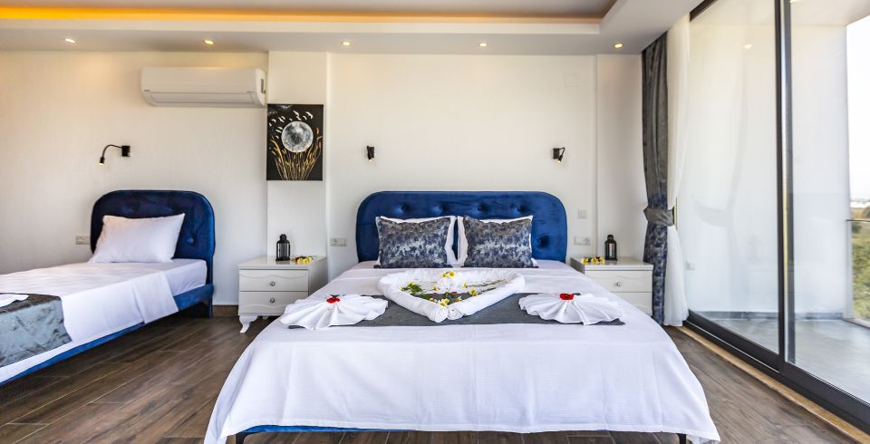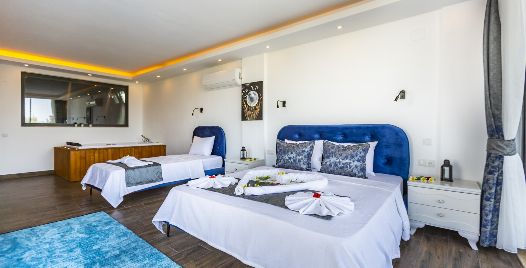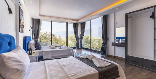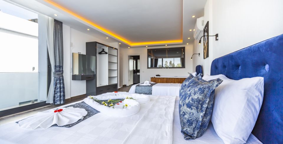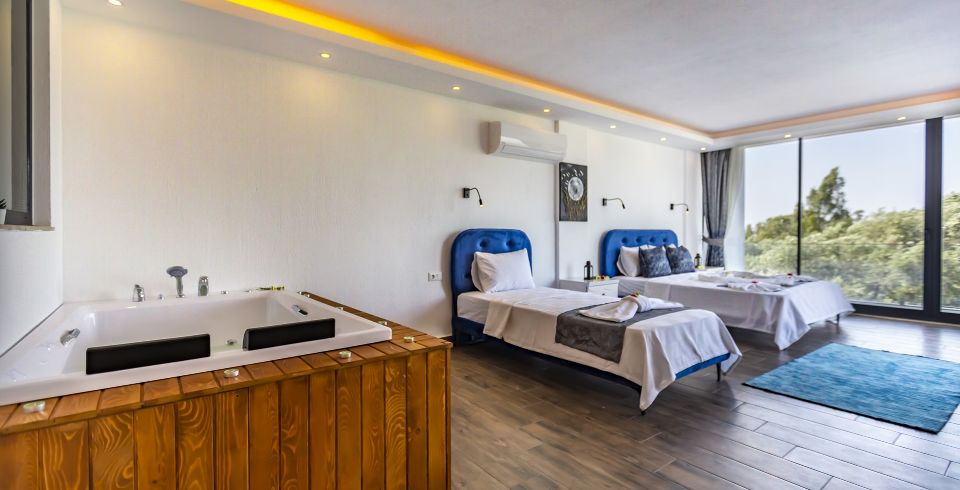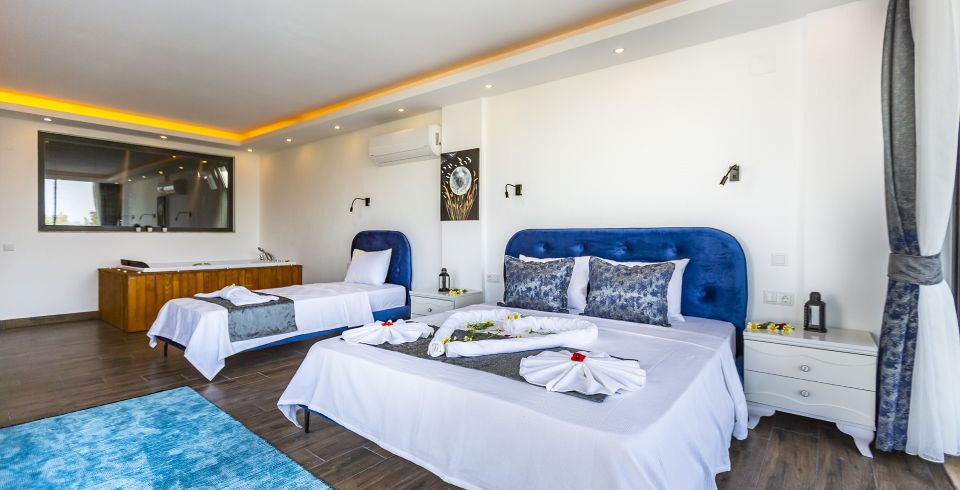1. Yatak Odası : Çift kişilik süit yatak odamızda adeta terapi olacak jakuzi bulunmaktadır. Patara’nın eşsiz manzarasına karşı lüks ve modern odamızda klima, elbise dolabı, makyaj masası, komodin, televizyon, banyo ve lavabo bulunmaktadır.