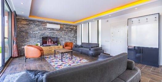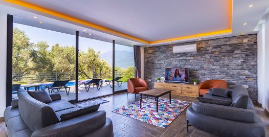 Salon : Havuz başına direkt çıkış yapabileceğiniz modern salonumuzda geniş oturma grubu, televizyon, klima, uydu alıcı, ütü, ütü masası, elektrikli süpürge bulunmaktadır.