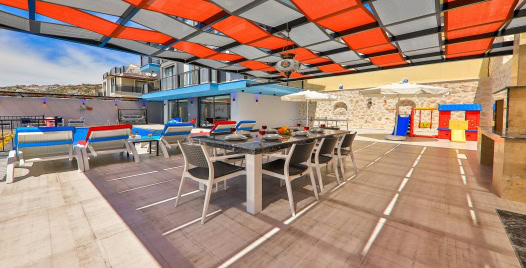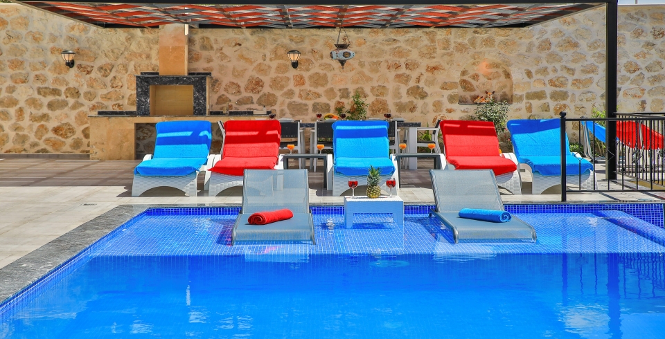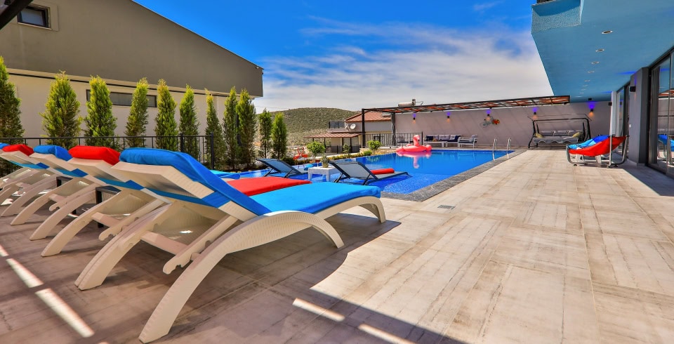 Havuz ve Bahçe : Villa havuz terasında özel yüzme havuzu, şemsiye, şezlong, barbekü, oturma grubu, yemek masası, salıncak, masa tenisi, langırt, çocuk oyun alanı bulunmaktadır.