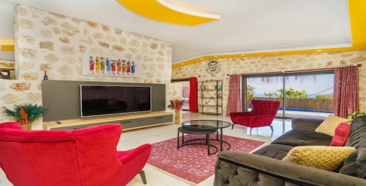 Modern ve ferah iç mekânda açık Amerikan mutfak; ankastre ocak, buzdolabı, mutfak gereçleri ve yemek masası ile donatılmıştır. Oturma alanında klima, TV ve Wi-Fi gibi konfor öğeleri yer alır. Havuz terasından ve bahçesinden kısmi deniz manzarası görmek mümkündür.