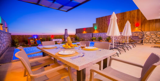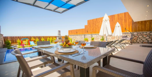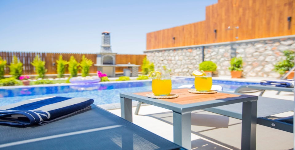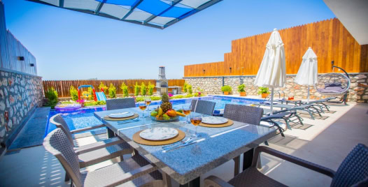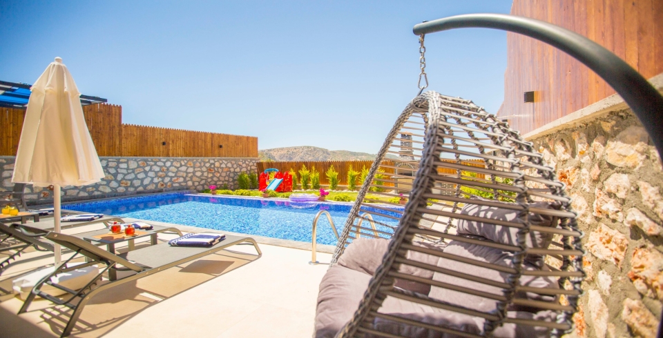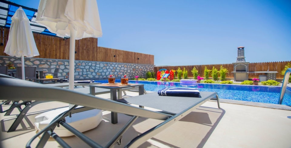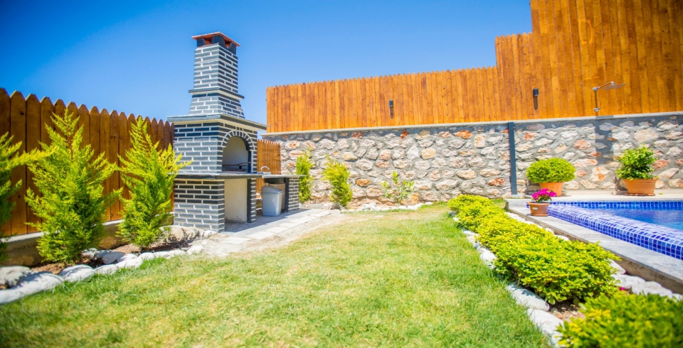 Havuz ve Bahçe : Bahçe içerisinde özel yüzme havuzu, şezlonglar, güneş şemsiyeleri, bahçe oturma grubu, taş barbekü, bahçe yemek masası bulunmaktadır.