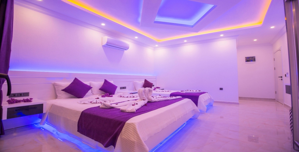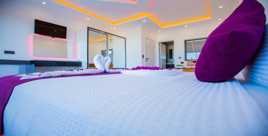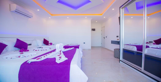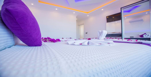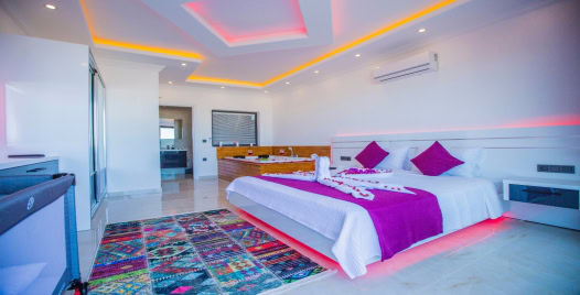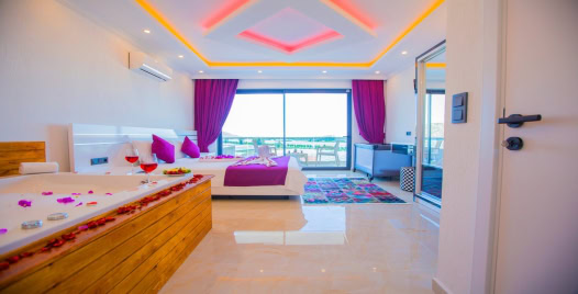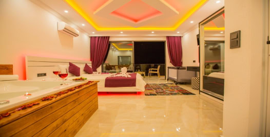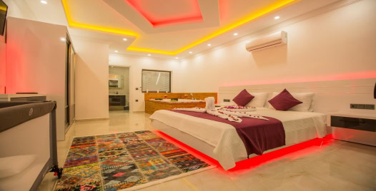 1. Yatak Odası : Çift kişilik bir adet yatak, elbise dolabı, komodin, klima, jakuzi, banyo ve tuvalet bulunmaktadır.