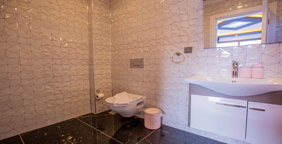 1. Yatak Odası: Çift kişilik yatak, klima, jakuzi, TV, komodin, elbise dolabı, makyaj masası, banyo ve tuvalet bulunmaktadır.