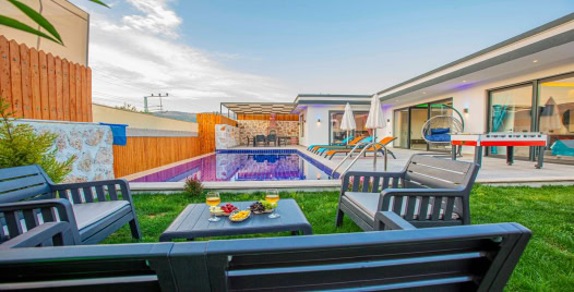 Havuz ve Bahçe: Havuz ve bahçesi korunaklı olup dışarıdan gözükmemektedir. Özel yüzme havuzu, şezlong, şemsiye, oyun parkı, salıncak, hamak, yemek masası ve barbekü bulunmaktadır.