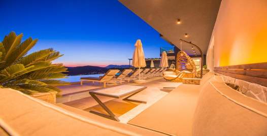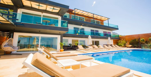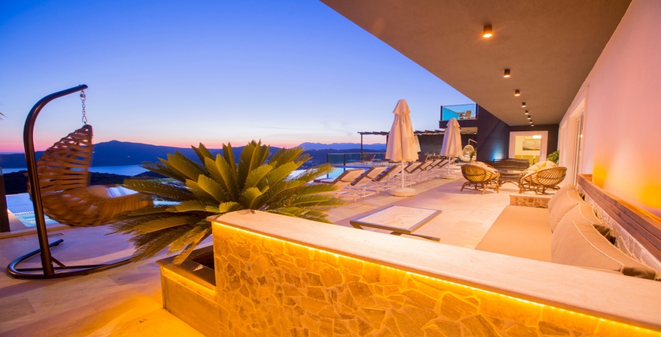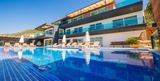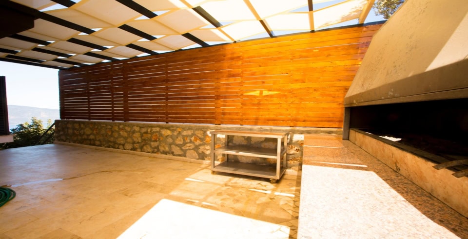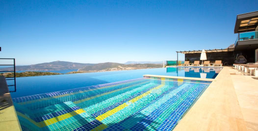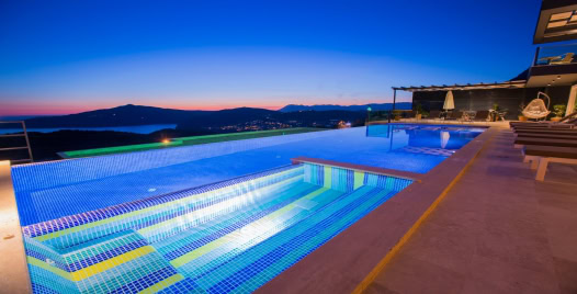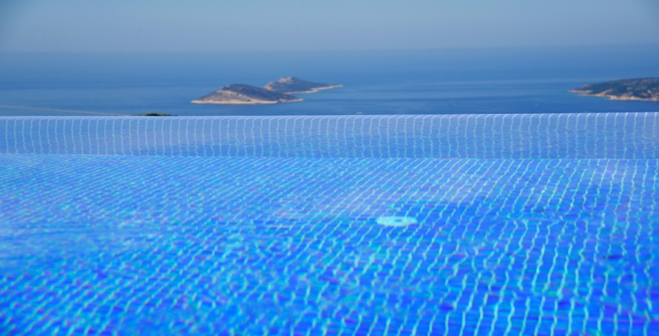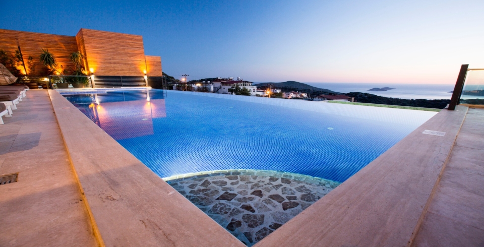 Villanın dış alanında yer alan 15 metre uzunluğundaki geniş sonsuzluk havuzu, denizle birleşen bir görsel şölen oluşturur. Havuzun bir kısmı ısıtmalı olarak kullanılabilmektedir, bu sayede mevsim fark etmeksizin keyifli yüzme deneyimi yaşanabilir. Gün boyu Akdeniz güneşinin tadını çıkarabileceğiniz şezlonglar, gölgelik alanlar, barbekü köşesi ve yemek masasıyla donatılmış geniş bir teras, villanın sunduğu yaşam kalitesini bir üst seviyeye taşır.