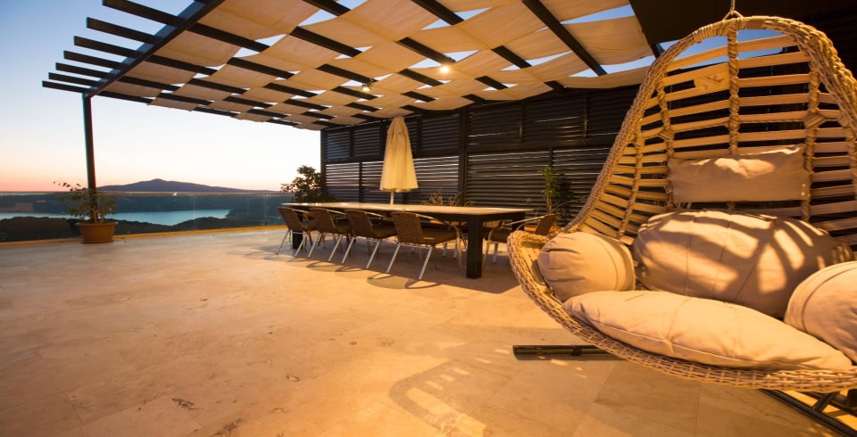 Korunaklı yapıya sahip bahçe ve havuz alanı, dışarıdan görünmeyecek şekilde tasarlandığı için muhafazakâr aileler de gönül rahatlığıyla konaklayabilir. Gün batımında manzaraya karşı akşam yemeği yemek veya sabah kahvenizi Akdeniz’in mavi sularına karşı yudumlamak, Villa Montana’da sıradan bir günün parçası haline gelir.