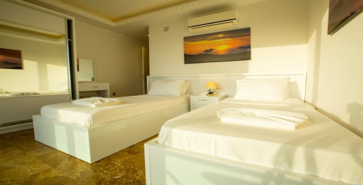 6. Yatak Odası (2. Kat) : Deniz manzaralı suit oda, 2 adet tek kişilik yatak, komodin, makyaj masası, klima, balkon, sehpa ve sandalyeler, banyo ve tuvalet bulunmaktadır.
