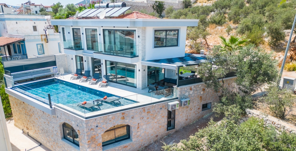 Villa Moonset, Kalkan’ın Ortaalan bölgesinde, panoramik deniz ve doğa manzarasına sahip lüks bir tatil villasıdır. Toplam 3 yatak odası ve 3 en-suite banyosu bulunan villa, 6 kişilik kapasitesiyle aileler ve arkadaş grupları için idealdir. Modern tasarımlı geniş salon, tam donanımlı mutfak ve konforlu yaşam alanlarıyla öne çıkar. İç mekânda kapalı yüzme havuzu, sauna ve oyun odası bulunurken; dış mekânda deniz manzaralı açık havuz, şezlonglar, barbekü alanı ve geniş teras yer alır.